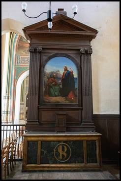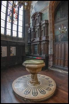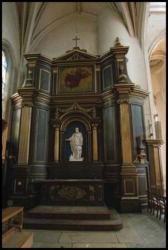 cuve baptismale octogonale date du XVe siècle. Le retable, jadis utilisé dans