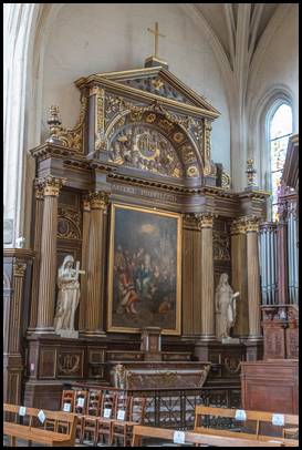 tribune qui porte l'orgue est de style Renaissance. Les sculptures du buffet