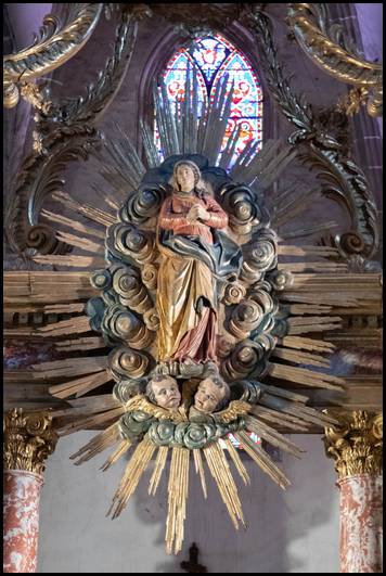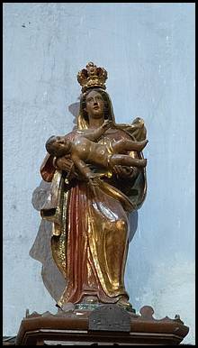Cette chapelle est adossée au clocher. Retable du Rosaire œuvre de Joseph