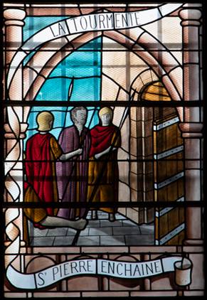 Pierre est mené en prison, enchaîné à cause de sa foi |