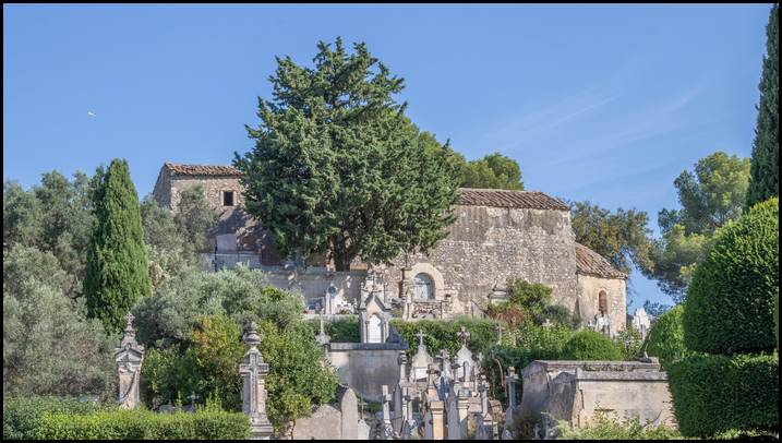 Située dans le cimetière d’Eyguières la Saint-Vérédème a été édifiée sur les vestiges d’un édifice antique.
